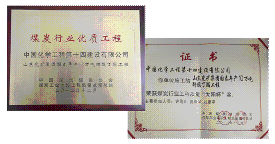 喜訊!5月7日,中國煤炭建設(shè)協(xié)會(huì)在陜西西安舉行煤炭建設(shè)行業(yè)創(chuàng)先爭優(yōu)表彰會(huì),山東公司2011年承建的兗礦國泰10萬噸/年醋酸丁酯工程(罐區(qū)標(biāo)段)榮獲煤炭行業(yè)“優(yōu)質(zhì)工程”及煤炭行業(yè)工程質(zhì)量“太陽杯”兩個(gè)獎(jiǎng)項(xiàng)。