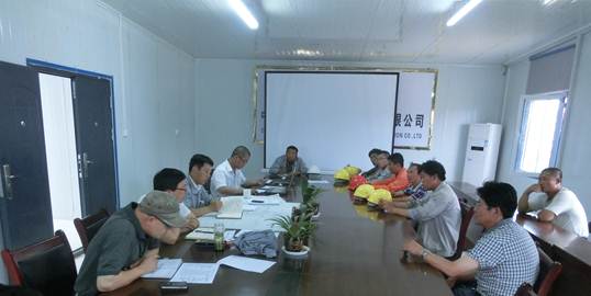 7月27日17:00~ 21:30,南京工程公司經(jīng)理程孝志帶領(lǐng)施工經(jīng)理黃才福、葉守泉等項目領(lǐng)導(dǎo)班子、主要管理人員,就兗礦榆林100萬噸/年煤間接液化示范項目油品加工精制裝置土建施工進度、質(zhì)量控制、安全等,在項目部會議室,與巴彥淖爾市臨河第二建筑安裝工程有限責(zé)任公司委派的代表、現(xiàn)場負(fù)責(zé)人、技術(shù)員、安全員、施工班組長進行了長達(dá)4個半小時的約談。
