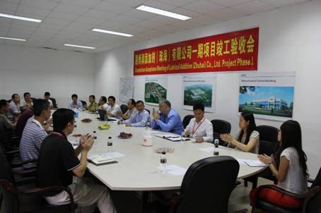 8月19日上午,華南公司舉行路博潤添加劑一期項(xiàng)目竣工驗(yàn)收會(huì),路博潤添加劑(珠海)工廠總經(jīng)理Greg Mccull0ugh(馬國瑞)、路博潤亞太地區(qū)總監(jiān)彭文浩、IPMT總監(jiān)吳強(qiáng)、廣東順業(yè)監(jiān)理公司總監(jiān)馮華、珠海市金灣區(qū)質(zhì)檢站站長王濤、高欄港經(jīng)濟(jì)區(qū)統(tǒng)籌發(fā)展局副局長何錦基、華南公司經(jīng)理陳申付、華陸科技工程有限公司路博潤項(xiàng)目設(shè)計(jì)經(jīng)理翟憲生等21位領(lǐng)導(dǎo)和專家參加了會(huì)議。