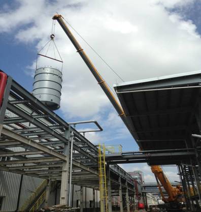 本次吊裝為擴(kuò)建工程反應(yīng)罐,吊裝過程中存在許多困難。由于03裝置區(qū)已經(jīng)投產(chǎn),罐體必須從屋頂進(jìn)入廠房,要求拆除屋頂,導(dǎo)致受限空間和作業(yè)面積狹小,吊裝過程中吊車駕駛員視線又被廠房墻壁擋住,完全靠協(xié)調(diào)指揮,雖然設(shè)備只有32噸,但吊裝高度高(35米)、吊裝作業(yè)半徑大,生產(chǎn)裝置不能停產(chǎn)的狀況,給本次吊裝增添了新的難度。華南公司在時(shí)間緊迫;任務(wù)艱巨的情況下,華南公司經(jīng)理陳申付、施工經(jīng)理丁文明積極與業(yè)主、IPMT、監(jiān)理公司協(xié)調(diào)溝通達(dá)成共識(shí),合理安排勞動(dòng)力,精確計(jì)算吊裝角度,在確保吊裝安全的前提下、果斷指揮,細(xì)致操作,使吊裝工作在預(yù)控范圍內(nèi)有序推進(jìn),經(jīng)過8個(gè)小時(shí)的鏖戰(zhàn),安全高效完成了這次吊裝任務(wù),得到了業(yè)主的高度評(píng)價(jià)。