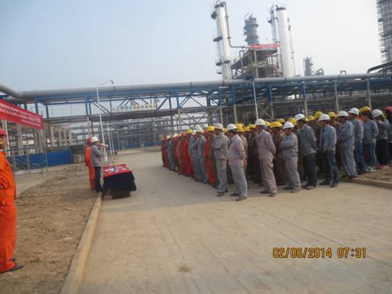為響應(yīng)公司《關(guān)于開展2014年度“安全生產(chǎn)月”活動的通知》的號召,繼續(xù)深化“安全生產(chǎn)年”活動各項任務(wù),弘揚公司安全文化,提高項目管理及施工人員安全生產(chǎn)的基本素質(zhì),在南京工程公司各所屬項目形成一個大力開展安全生產(chǎn)宣傳、事故警示教育、應(yīng)急演練、隱患排查治理的活動熱潮,保證“安全生產(chǎn)月”各項活動的圓滿完成,6月2日,南京工程公司統(tǒng)一部署和要求,在陜西蒲城項目、陜西未來能源項目、中煤榆橫項目、泰州濱江項目、惠州煉化二期項目分別召開了以“強化紅線意識,促進安全發(fā)展”為主題的“安全生產(chǎn)月”動員大會。