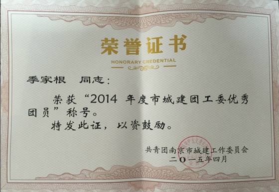 近日,南京城建團工委下發(fā)文件,對2014年度南京市城建系統(tǒng)先進集體和個人進行表彰。我公司華南公司團支部榮獲“2014年度市城建團工委先進團(總)支部”稱號;南京工程公司團支部書記周虎榮獲“2014年度市城建團工委優(yōu)秀團干部”稱號;國外工程公司季家根榮獲“2014年度市城建團工委優(yōu)秀團員稱號”。