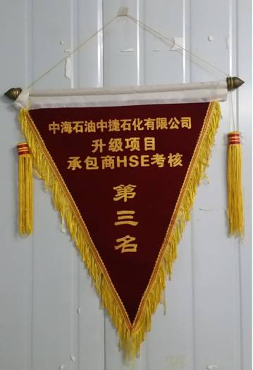 11月9日,云南公司滄州中捷項目部獲得中海石油中捷石化有限公司安全環(huán)保與清潔燃料升級項目承包商月度HSE考核第三名。