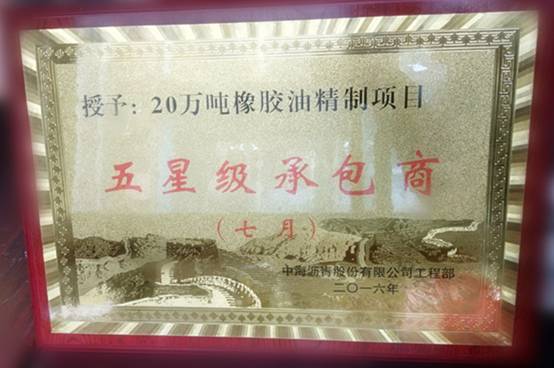 此次評選活動歷時1個月,由中海瀝青公司工程管理部組織評選,健康安全環(huán)保部、技術(shù)組參與評選。評選要求各承包商每月考核分?jǐn)?shù)100分,考核分?jǐn)?shù)在90分以上,頒發(fā)“五星級承包商”稱號。這是4月份至7月份以來,業(yè)主發(fā)的第一個“五星級承包商”稱號,也是目前20萬噸橡膠油項目的第一個榮譽。