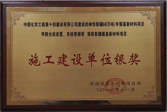 11月25日,在武漢召開的神華新疆68萬(wàn)噸/年煤基新材料項(xiàng)目總結(jié)表彰會(huì)上,由我公司承建的甲醇合成裝置、系統(tǒng)管廓在施工過(guò)程中認(rèn)真按照新疆煤基新材料項(xiàng)目部要求和公司項(xiàng)目管理相關(guān)規(guī)定,高標(biāo)準(zhǔn)、嚴(yán)要求,以一流的技術(shù)、一流的服務(wù)、一流的管理贏得了業(yè)主的肯定,榮獲新疆煤基新材料項(xiàng)目“施工建設(shè)單位銀獎(jiǎng)”稱號(hào)。獲得此榮譽(yù)不僅提升了公司工程品牌形象,也為公司進(jìn)一步開拓新疆市場(chǎng)奠定了扎實(shí)的基礎(chǔ)。