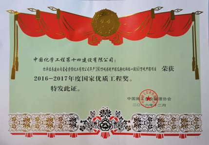 近日,經(jīng)國(guó)家工程建設(shè)質(zhì)量獎(jiǎng)委員會(huì)審定,我公司承建的內(nèi)蒙古榮信化工有限公司180萬噸煤制甲醇及轉(zhuǎn)化烯烴一期60萬噸煤制甲醇項(xiàng)目榮獲“2016~2017年度國(guó)家優(yōu)質(zhì)工程獎(jiǎng)”,項(xiàng)目經(jīng)理張永榮獲2016-2017年度國(guó)家優(yōu)質(zhì)工程獎(jiǎng)突出貢獻(xiàn)者榮譽(yù)稱號(hào)。
