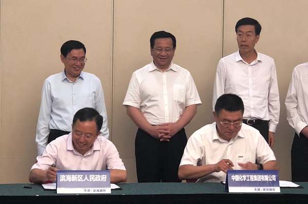 戴和根介紹了集團(tuán)公司綜合實(shí)力和上半年取得的成績(jī)。他表示,濱海新區(qū)政策優(yōu)勢(shì)明顯,發(fā)展?jié)摿薮?,中?guó)化學(xué)將全方位助推濱海新區(qū)繁榮宜居智慧新城建設(shè)。近年來,中國(guó)化學(xué)以改革和創(chuàng)新為動(dòng)力,形成化學(xué)工程、基礎(chǔ)設(shè)施、環(huán)保、實(shí)業(yè)、金融五大板塊協(xié)調(diào)發(fā)展的業(yè)務(wù)格局,實(shí)現(xiàn)高質(zhì)量超常規(guī)跨越式發(fā)展,努力將集團(tuán)公司建設(shè)成為具有全球競(jìng)爭(zhēng)力的世界一流企業(yè)。未來中國(guó)化學(xué)將繼續(xù)加強(qiáng)與新區(qū)的全方位對(duì)接,在工程承包、環(huán)境治理、基礎(chǔ)設(shè)施建設(shè)以及金融等方面進(jìn)一步深化與新區(qū)的合作,努力為新區(qū)經(jīng)濟(jì)發(fā)展作出更大貢獻(xiàn)。