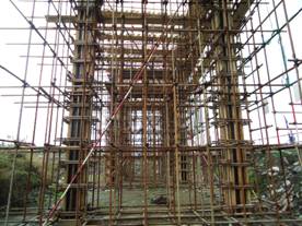 四川石化煉油區(qū)外管廊總長度約6公里,共分555條軸線和2548個砼柱,施工過程全部采用清水混凝土施工工藝。自2010年9月15日進行上部結(jié)構(gòu)施工以來,在項目部精心組織和協(xié)調(diào)下,全體參戰(zhàn)員工經(jīng)過七個月的奮戰(zhàn),于5月9日完成該項目的關(guān)鍵和核心——2#管廊的最后一個管廊軸線上部結(jié)構(gòu)的混凝土澆注。在此期間累計完成滿堂腳手架及雙排腳手架搭設(shè)32萬M2,各規(guī)格鋼筋制安2240噸,模板制安7.3萬M2,C35混凝土澆筑6800M3。