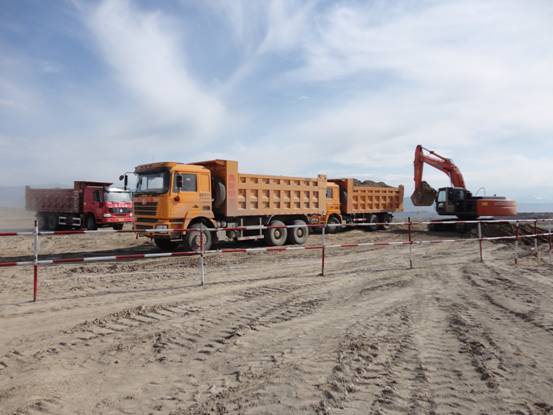 2011年5月15日,按照集團(tuán)公司要求,我公司承建的備煤裝置正式破土動工,備煤裝置貯煤倉由七個(gè)圓筒倉組成,直徑22米,高47米,混凝土壁厚0.4米;基礎(chǔ)埋深6.3米,底板為3.3米厚C40混凝土;土方開挖量為5萬立方米,現(xiàn)場采用反鏟挖掘機(jī)挖土,20噸自卸汽車運(yùn)土,運(yùn)距4.2公里,外運(yùn)土方量為2.5萬立方米,計(jì)劃10天內(nèi)完成土方開挖。