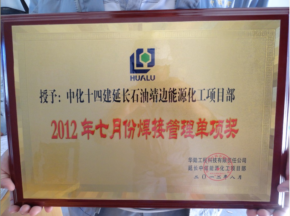 8月15日,華陸科技延長石油靖邊能源項(xiàng)目部召開了月度先進(jìn)表彰大會(huì)。我公司靖邊項(xiàng)目部被授予“2012年七月份焊接管理單項(xiàng)獎(jiǎng)”,起重工董德啟榮獲“2012年七月份HSE先進(jìn)個(gè)人”榮譽(yù)稱號(hào)。