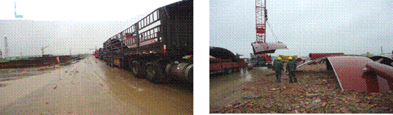 9月3日中午,南京機(jī)械廠濱陽(yáng)燃化項(xiàng)目現(xiàn)場(chǎng)還在不停的下著大雨,道路濕滑,戶外施工作業(yè)無(wú)法進(jìn)行。而就在此時(shí),施工合作方、球罐殼板壓制單位——無(wú)錫城益化工機(jī)械有限公司的球殼板運(yùn)至現(xiàn)場(chǎng),急需卸車。面對(duì)這一情況,項(xiàng)目經(jīng)理龐會(huì)云果斷決定,冒雨卸車!隨即率先趕赴停車現(xiàn)場(chǎng),在七輛裝滿球殼板的大貨車造成場(chǎng)地非常擁堵的狀況下,有序指揮車輛,并帶領(lǐng)卸車人員,冒著大雨,梳理交通,清理阻礙球殼板卸車通道及殼板堆放場(chǎng)地,同時(shí)采取有效的安全保障措施,專業(yè)起重施工人員指揮卸貨,在確保安全的前提下緊張有序地進(jìn)行起吊卸貨作業(yè)。經(jīng)過(guò)一個(gè)下午,滿載七輛球殼的貨車全部完成卸貨。這一行為,得到了施工合作方的贊譽(yù)。