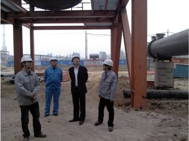 會后,張董在魯南項目部副經(jīng)理賈振華、技術(shù)負(fù)責(zé)人劉建平等陪同下對在建的兗礦魯南化工有限公司年產(chǎn)15萬噸丁醇項目施工現(xiàn)場進(jìn)行了檢查指導(dǎo)工作。在現(xiàn)場,張董對山東公司的項目施工工作給予較好的評價。對山東公司充滿期望,希望山東公司再接再厲,創(chuàng)造更大的輝煌,走出山東公司的特色。同時指出施工過程中安全一定要放在首位,并特別指出鋼框架上鋪設(shè)的鋼格板是重大的安全隱患,一定要做好安全防護(hù)預(yù)防工作,要求每天工人上班前都要有專人進(jìn)行鋼格板安全情況的檢查工作。張董的一番話,給現(xiàn)場工作人員帶來了很大的啟示,魯南項目部不會辜負(fù)張董的期望,必將做到安全零事故,不斷提高服務(wù)質(zhì)量,工程質(zhì)量,打出十四化建的品牌。