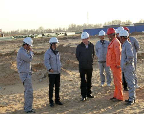 11月8日下午,公司董事長、總經(jīng)理張傳玉冒著寒風(fēng)在項目經(jīng)理于文浩、主任工程師陳學(xué)超的陪同下,來到由南京工程公司承建的陜西未來能源項目檢查指導(dǎo)工作。