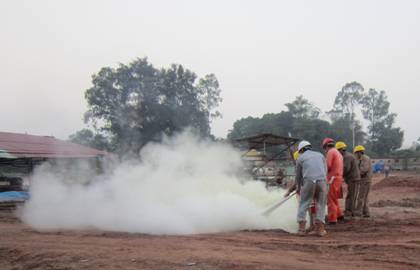 演練前,項(xiàng)目部HSE經(jīng)理杜安平就火災(zāi)報(bào)警、滅火知識(shí)、火場(chǎng)逃生和安全自救等向大家作了詳細(xì)介紹,并溫習(xí)了滅火器的使用方法、注意事項(xiàng)等知識(shí)。根據(jù)演練方案,當(dāng)火情發(fā)生時(shí),疏散負(fù)責(zé)人接到指令后,立即組織現(xiàn)場(chǎng)員工撤離到指定的緊急集合點(diǎn)。義務(wù)消防員就火災(zāi)發(fā)生時(shí),如何正確使用消防器材進(jìn)行了模擬實(shí)戰(zhàn)演練。整個(gè)演練過程,有條不紊、井然有序,全體參加演練的員工行動(dòng)迅速,演練達(dá)到了預(yù)期目的。