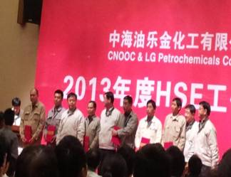 惠州中海油樂金化工有限公司2013年度HSE工作會議于1月7日下午14時隆重召開,南京工程公司惠州項目部項目經(jīng)理趙榮華代表十四化建上臺發(fā)言。會議中業(yè)主對各單位在施工建設(shè)中,HSE管理成績顯著的個人進行了頒獎,惠州項目部HSE主管付慶樂同志,被業(yè)主評為“HSE管理先進個人”,為公司贏得了榮譽。