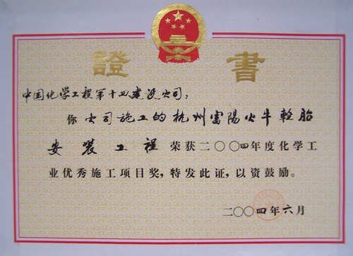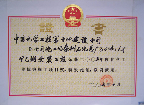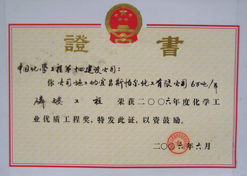 歷經(jīng)五十年不斷發(fā)展,公司憑借精湛的技術(shù)、豐厚的經(jīng)驗(yàn)、雄厚的實(shí)力和優(yōu)質(zhì)的服務(wù),為國(guó)家化學(xué)工業(yè)發(fā)千余項(xiàng)精品工程,獲得“國(guó)務(wù)院嘉獎(jiǎng)令”、“中國(guó)建筑工程魯班獎(jiǎng)”,“國(guó)家百項(xiàng)經(jīng)典及精品工程獎(jiǎng)”、“國(guó)家優(yōu)質(zhì)工程金獎(jiǎng)“國(guó)家優(yōu)質(zhì)工程銀獎(jiǎng)”、“全國(guó)優(yōu)秀焊接工程獎(jiǎng)”、“全國(guó)優(yōu)秀吊裝工程獎(jiǎng)”、“化學(xué)工業(yè)優(yōu)質(zhì)工程獎(jiǎng)”等各種嘉獎(jiǎng)200余項(xiàng);并多次被授予“全國(guó)優(yōu)秀施工企業(yè)”、”全國(guó)建筑業(yè)先進(jìn)企業(yè)”、“全國(guó)用戶滿意施工企業(yè)”,“全國(guó)建筑業(yè)誠(chéng)信企‘’全國(guó)建筑業(yè)AAA信用企業(yè)”、“全國(guó)重合同守信用企業(yè)”、“江蘇省知名建設(shè)承包商”等多種榮譽(yù)稱號(hào)。