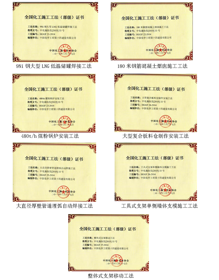 近日,從中國(guó)化工施工企業(yè)協(xié)會(huì)傳來(lái)喜訊,公司申報(bào)的7項(xiàng)工法均通過(guò)了部級(jí)工法評(píng)審,通過(guò)率100%。本次共有20家單位參與工法申報(bào),61項(xiàng)工法通過(guò)審定,我公司以7項(xiàng)工法連續(xù)第二次占部級(jí)工法完成單位之首。