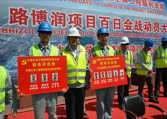 為確保8月中旬項(xiàng)目主體工程順利完成,5月9日,珠海路博潤(rùn)項(xiàng)目在現(xiàn)場(chǎng)召開(kāi)了“大干100天”百日會(huì)戰(zhàn)動(dòng)員大會(huì)。路博潤(rùn)添加劑(珠海)有限責(zé)任公司總經(jīng)理彭文浩、項(xiàng)目經(jīng)理Norman、廣東順業(yè)監(jiān)理公司總經(jīng)理王亞青、中國(guó)化學(xué)工程路博潤(rùn)項(xiàng)目經(jīng)理部焦大鵬,公司黨委書記李大國(guó)、華南公司經(jīng)理陳申付等領(lǐng)導(dǎo)及參建員工代表共300多人參加。公司副總經(jīng)濟(jì)師、經(jīng)營(yíng)部主任、華南公司黨支部書記錢岳明主持會(huì)議。