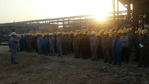 11月12日清晨,寧波江寧化工8萬(wàn)噸順酐項(xiàng)目“百日會(huì)戰(zhàn)”打響后的第50天,國(guó)外工程公司寧波項(xiàng)目部召集300多名員工舉行了“大干五十天”動(dòng)員大會(huì)。